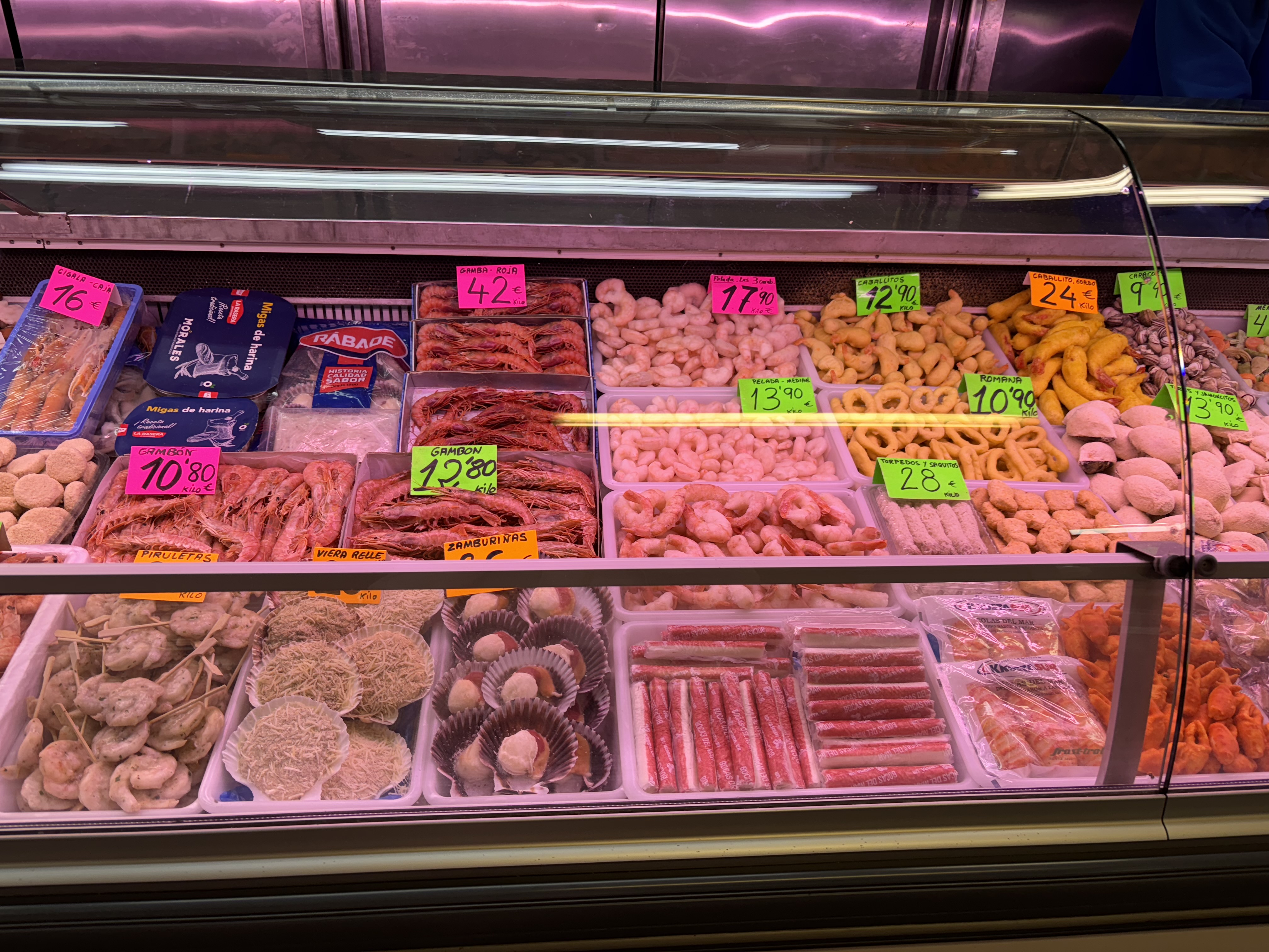 Självscanning i kassorna liksom hemma, och en varmkorv utanför kassorna, även om vi egentligen var mätta på tapasen. Och samma elände att hitta ut till rätt väg till Torre de la Horadada.