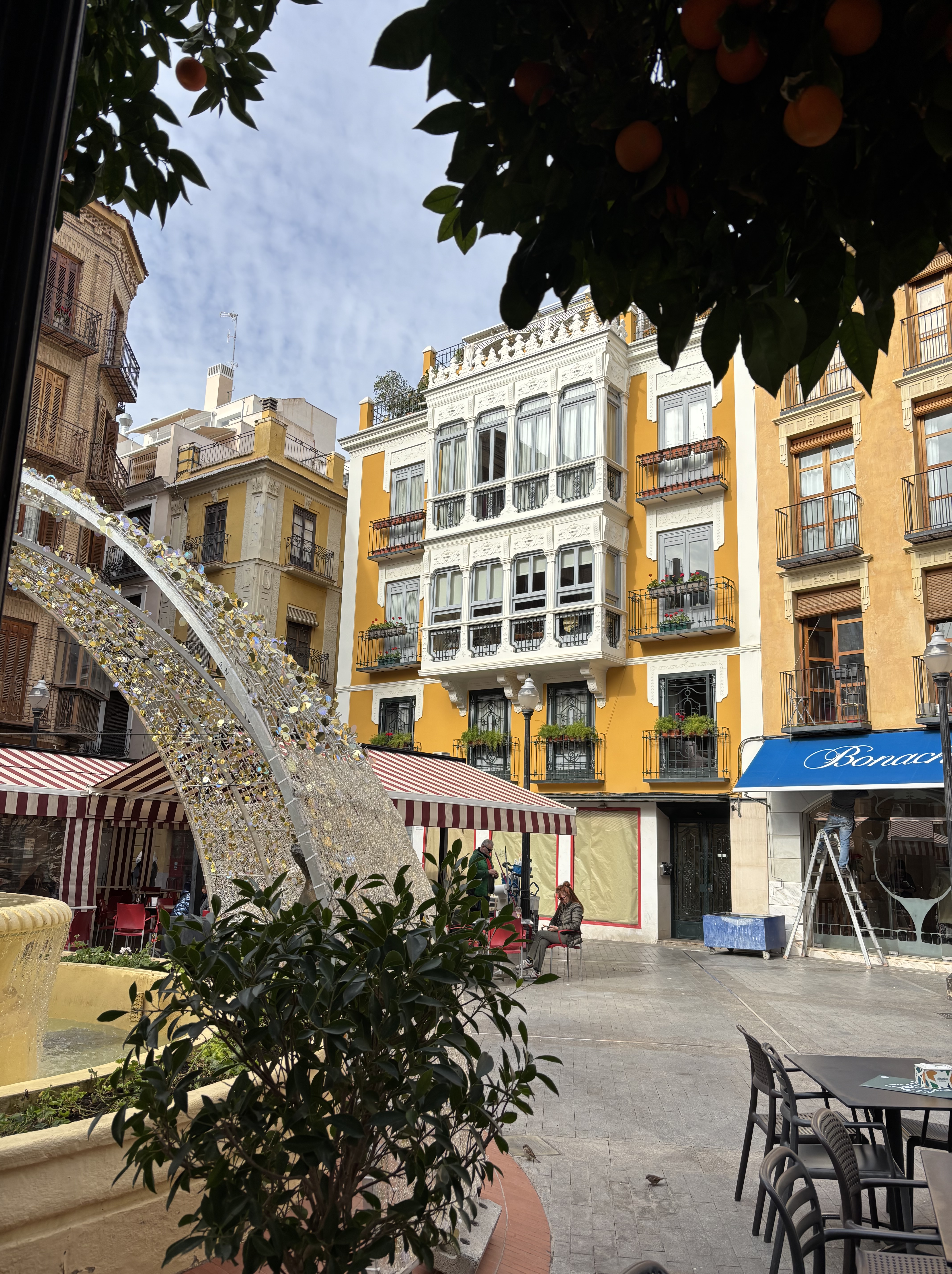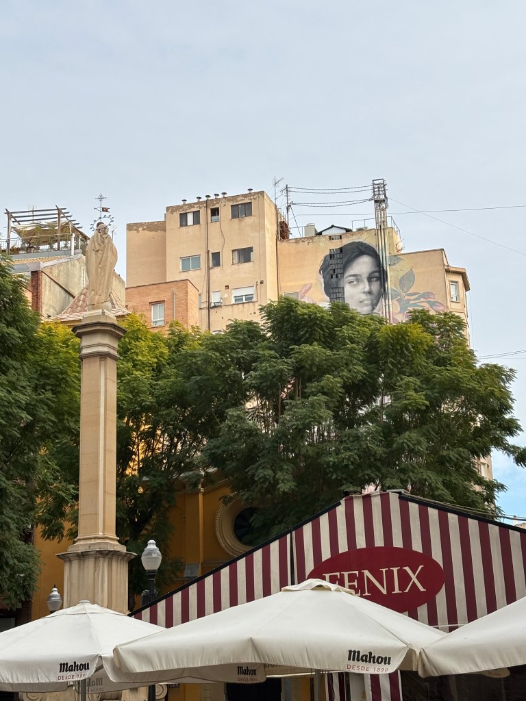 Murcia bjuder på både resterna av Veronicamuren från 1100-talet, byggd för att skydda den morisk- spanska staden innanför, vackra hus och gatumålningar . Utanför teatern satt ett sällskap som jag inbillade mig var kulturpersonligheter och såg högdragna ut, men jag vet inget om spanska skådespelare, så det är bara en tjejgissning.
