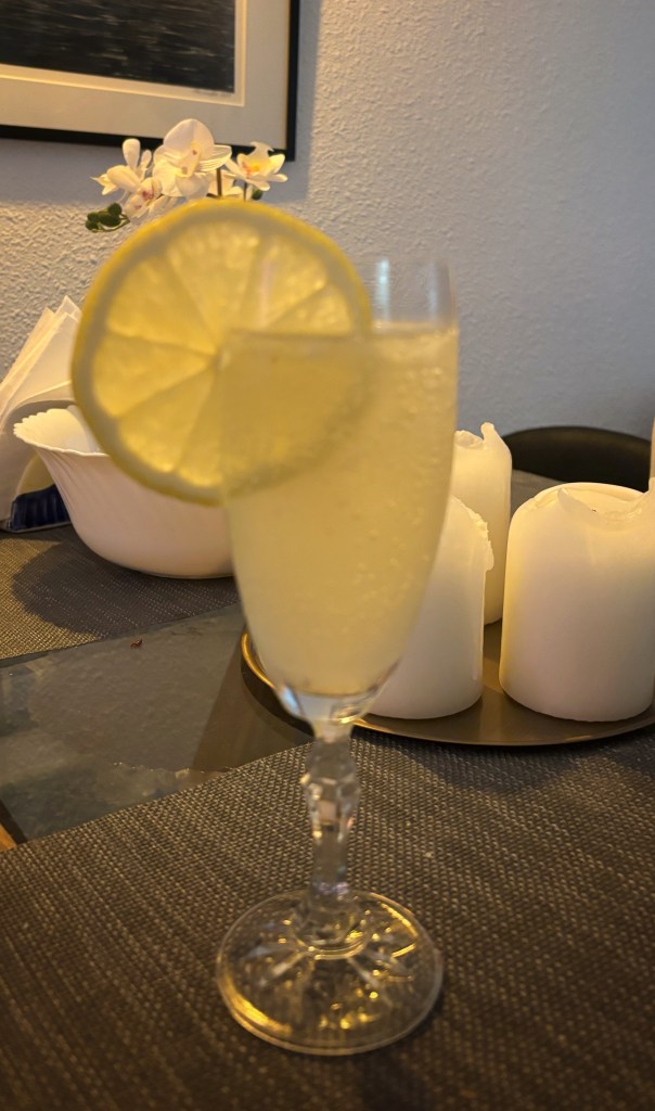 I veckan läste jag ut Alix St PIerres tre liv, en roman av Natasha Lester, som till stor del utspelar sig i efterkrigstidens Paris och där de dricker massor av en drink som heter soixante-cinq. Hade inte en aning om vad det var, men blev nyfiken och googlade, och blandade till den i går. Våra citroner måste ju användas.
