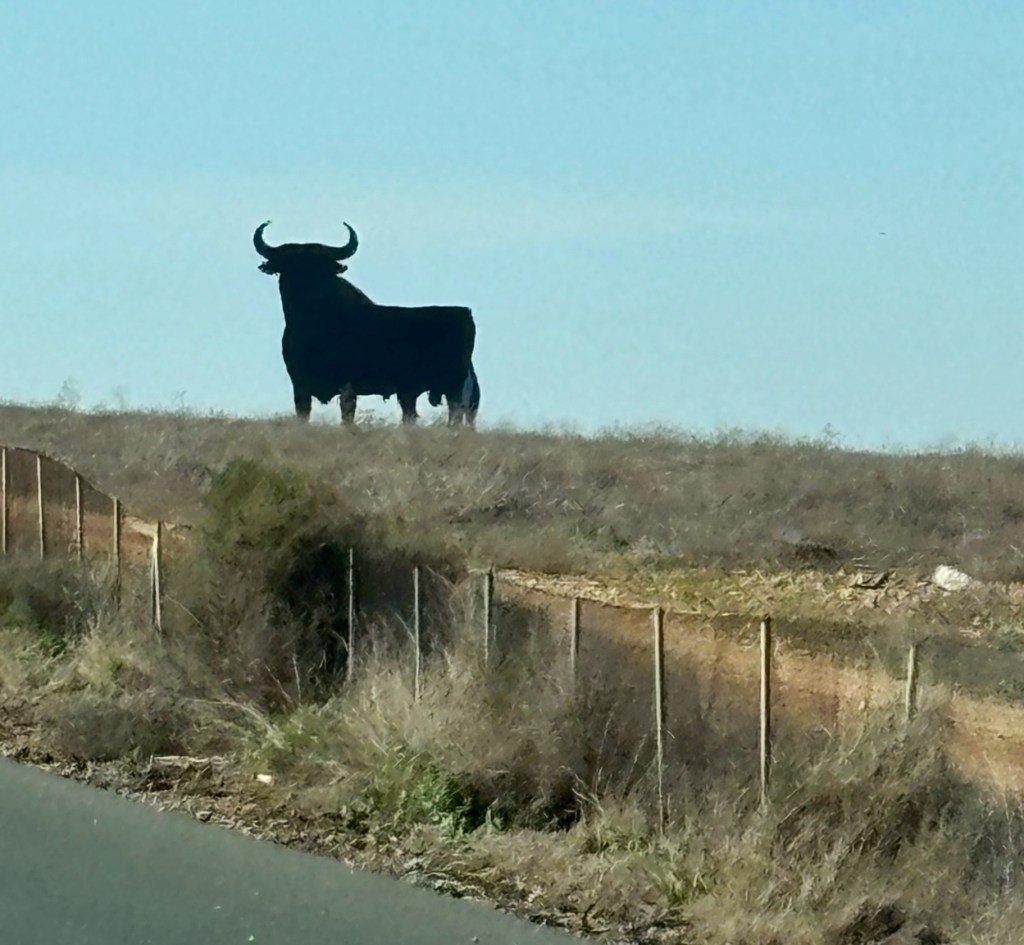 Motorvägen till Sevilla var lite speciell. Först satt det storkar på massor av lyktstolpar, som fiskmåsar i Sverige, och på några kraftledningsstolpar hade de byggt bon. Hann bara ta ett halvtaskigt foto, skyller på att det inte är lätt att få till det i 120km/h. Sedan körde vi om två män i tights på racercyklar, och senare en traktor. Nästan som i Kuba, fast där körde de hästkärror också.