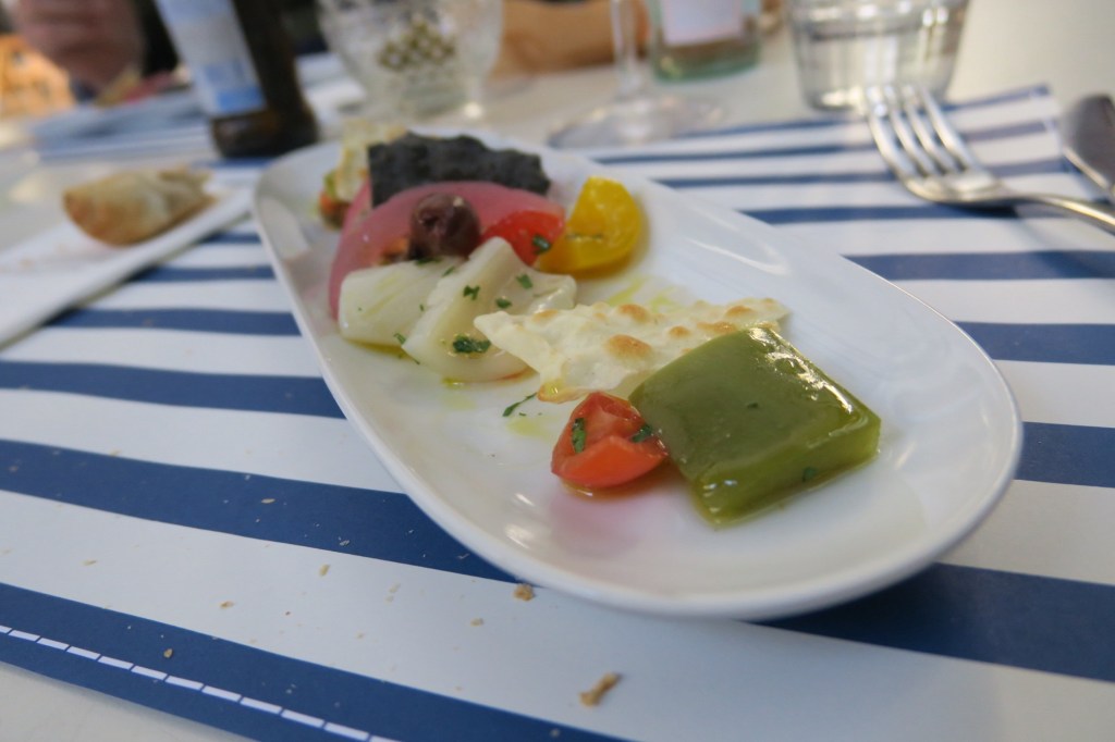 Lunchen blev kanon, lite språkliga misstag för jag trodde jag har beställt en rätt, men hade nog varit otydlig så vi fick först en sallad med fisk och skaldjur som var himmelsk, innan den friterade blandade fisken. Huvudfisken där var godare än glad.