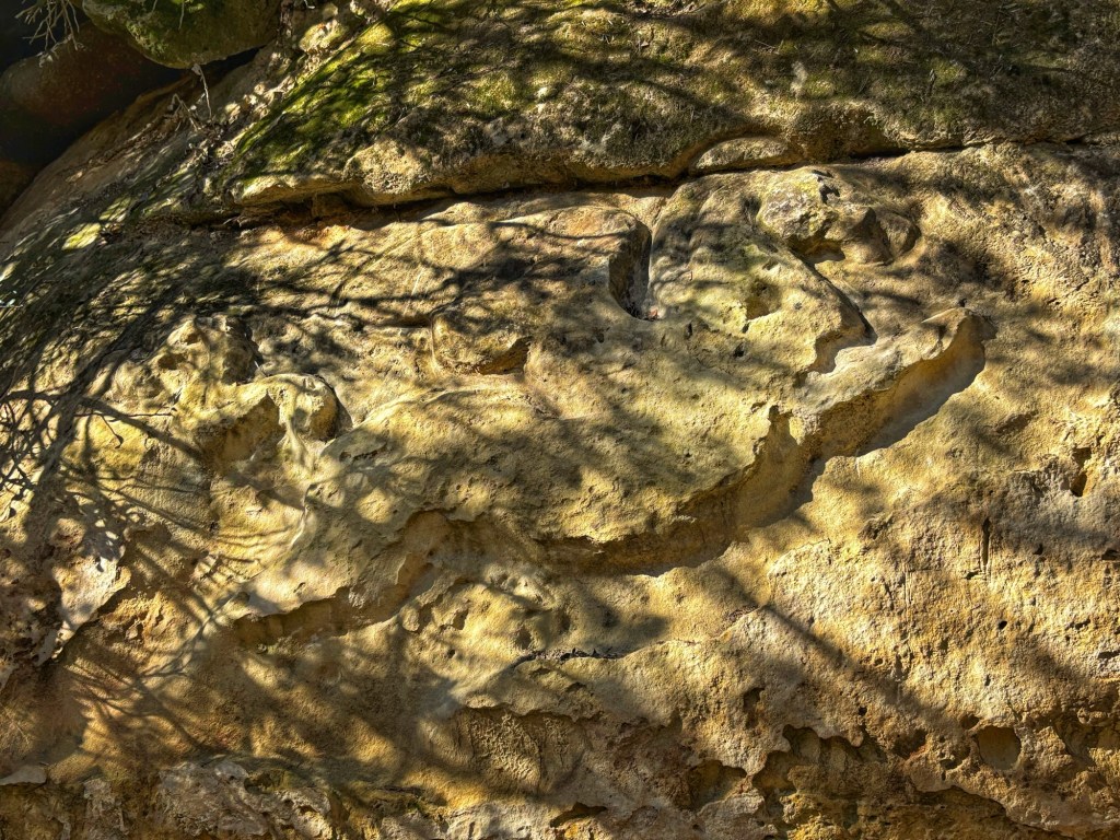 Tack och lov hade jag stavarna och ibland en hjälpande hand från Mannen med mig, för lätt vill jag inte kalla den här leden. Över stock och sten gick den, förutom att ibland nästan hoppa mellan stenblocken och kliva över stockar gällde det att undvika vattenhindren. Dessutom vete katten om vi hittat om inte våra vänner gått den innan och viste var man skulle svänga. De fortsatte den längre sträckningen på 10 km, men sade att den svåraste biten hade vi gått.