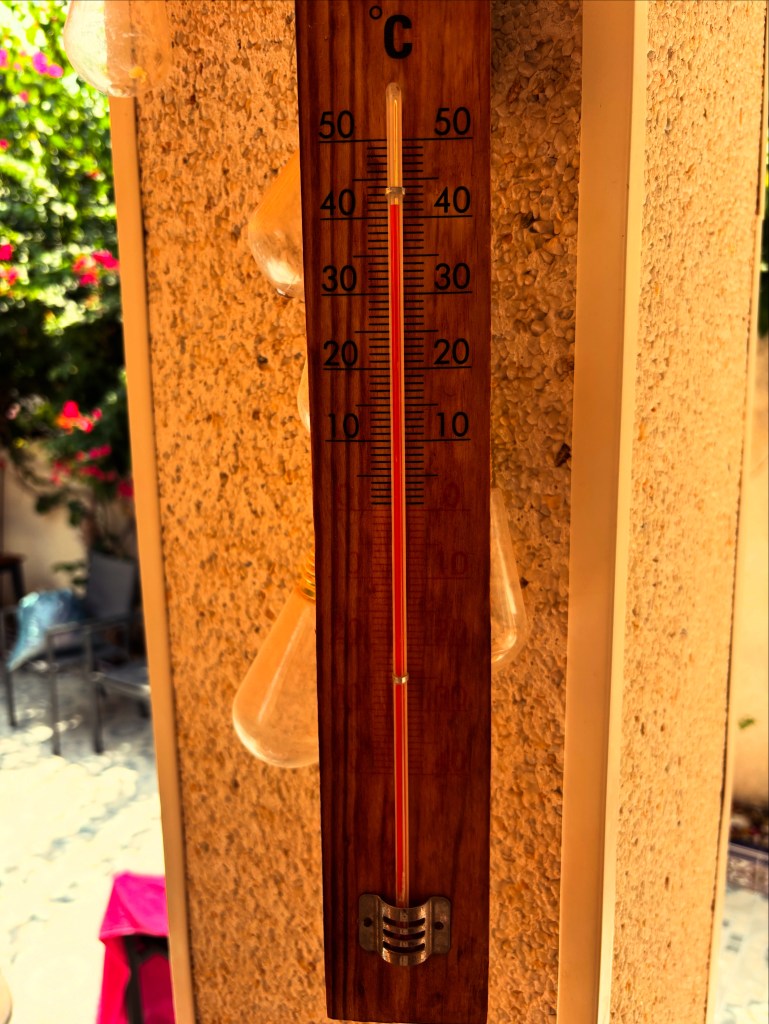 När jag öppnade dörren för att skaka något eller hänga upp tvätten var det som att stå för nära när man öppnar ugnsluckan på 250 grader. Då hade temperaturen i skuggan gått upp till 44 och när jag testade att lägga termometern i solen slog den i taket med 50 grader. Perfekt väder att städa och möblera om inomhus alltså!