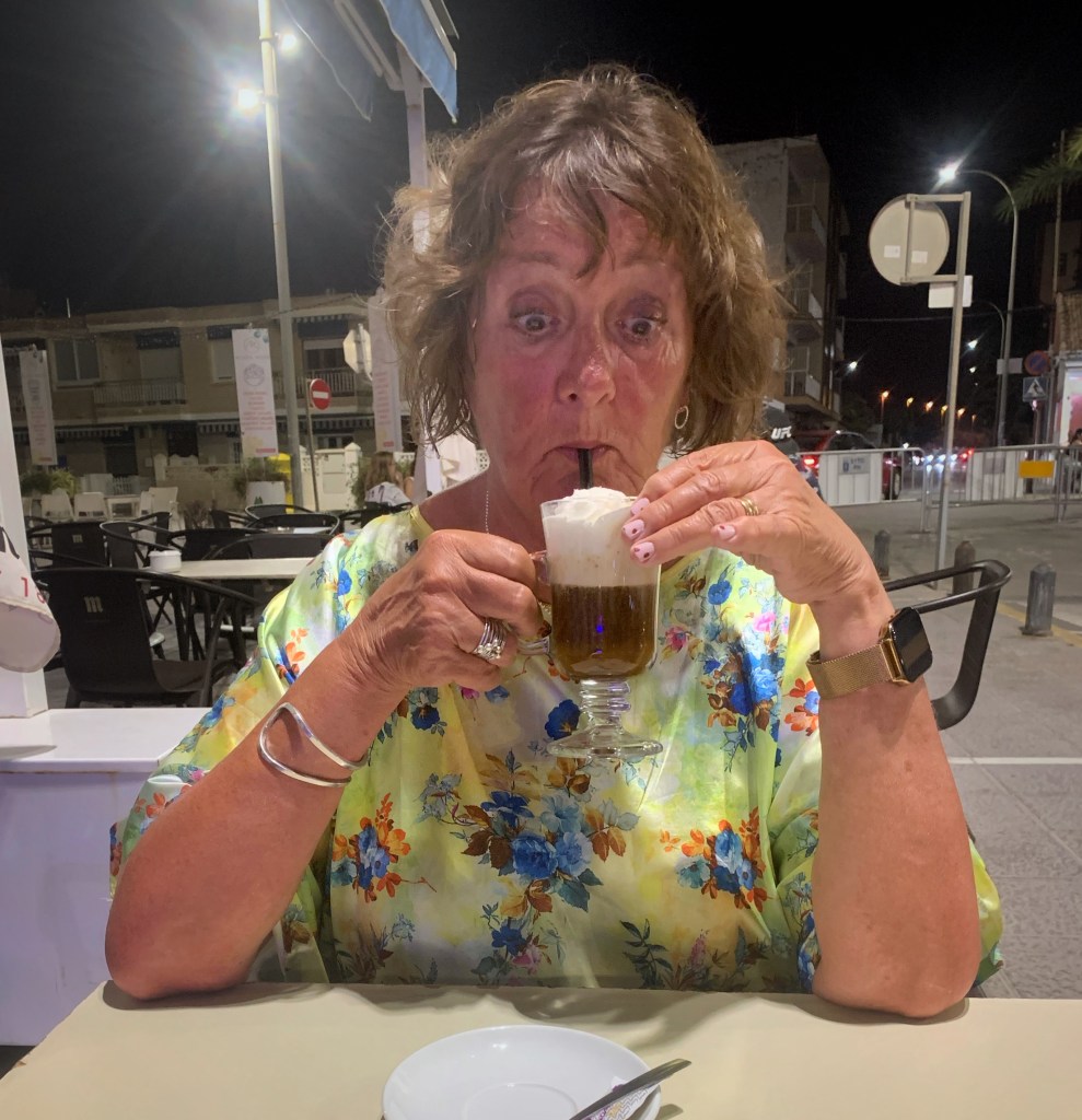 Sedan bad vi om en flaska vatten utan bubblor, och fick snabbt in en flaska som jag hällde upp och upptäckte att den var varm. Mannen ropade på tösen och talade om att vi ville ha kallt vatten. ”Sorry” tyckte hon, det var allt, inte byta eller erbjuda is. Jag förbjöd Mannen att bråka med dem på min födelsedag, men någon dricks blev det inte. Däremot var Irish Coffee på Pata Negra på torget lika bra som vanligt. På hemvägen kom jag på att jag inte druckit bubbel på hela dagen, så det blev även ett stopp med bubblor på Plaza Nueva.