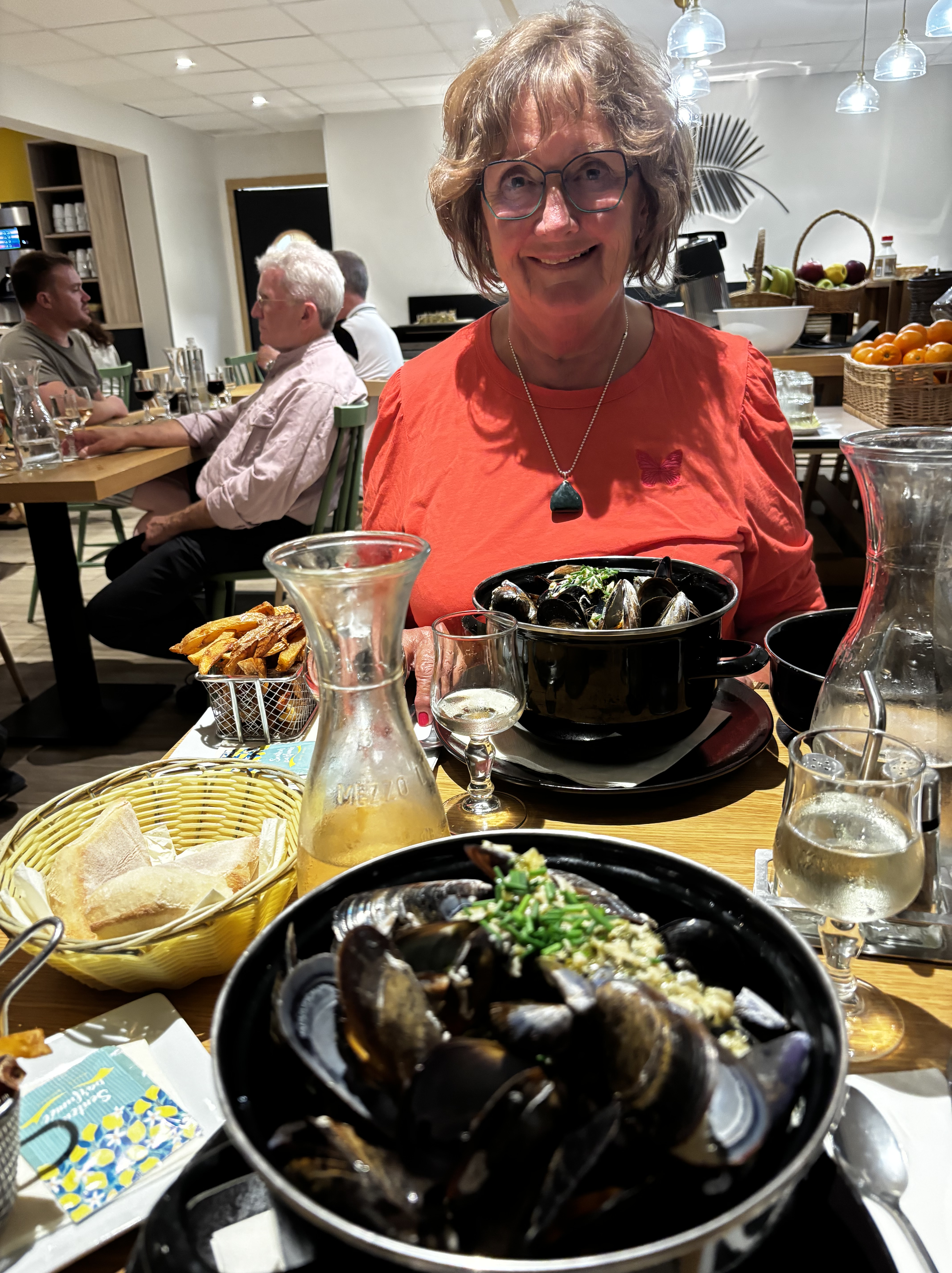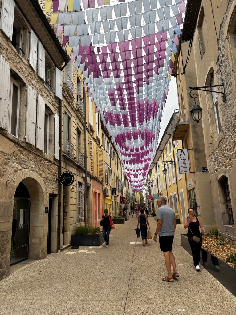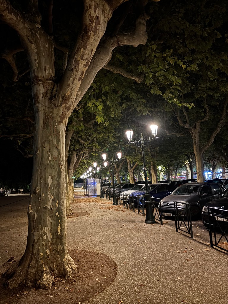 Vi gick ner på stan, även här med underbara alléer som gav skugga och hamnade på en restaurang som serverade både god mat och gott vin. Från parken tvärs över gatan spelades musettedragspel och dansades och det kunde inte bli mer franskt än så här. Både Mannen och jag kände att Frankrike faktiskt är ett land man kan vistas länge i.