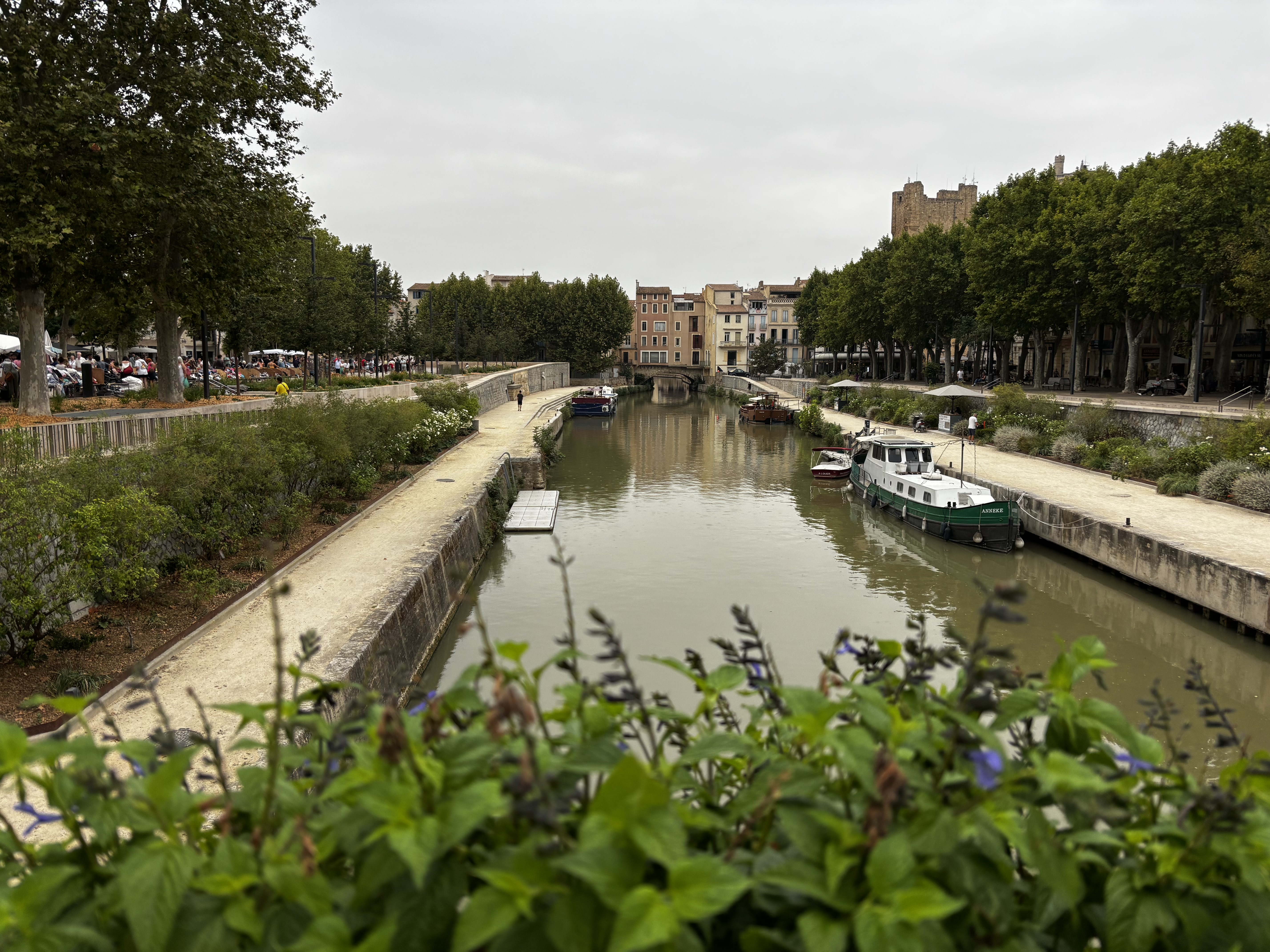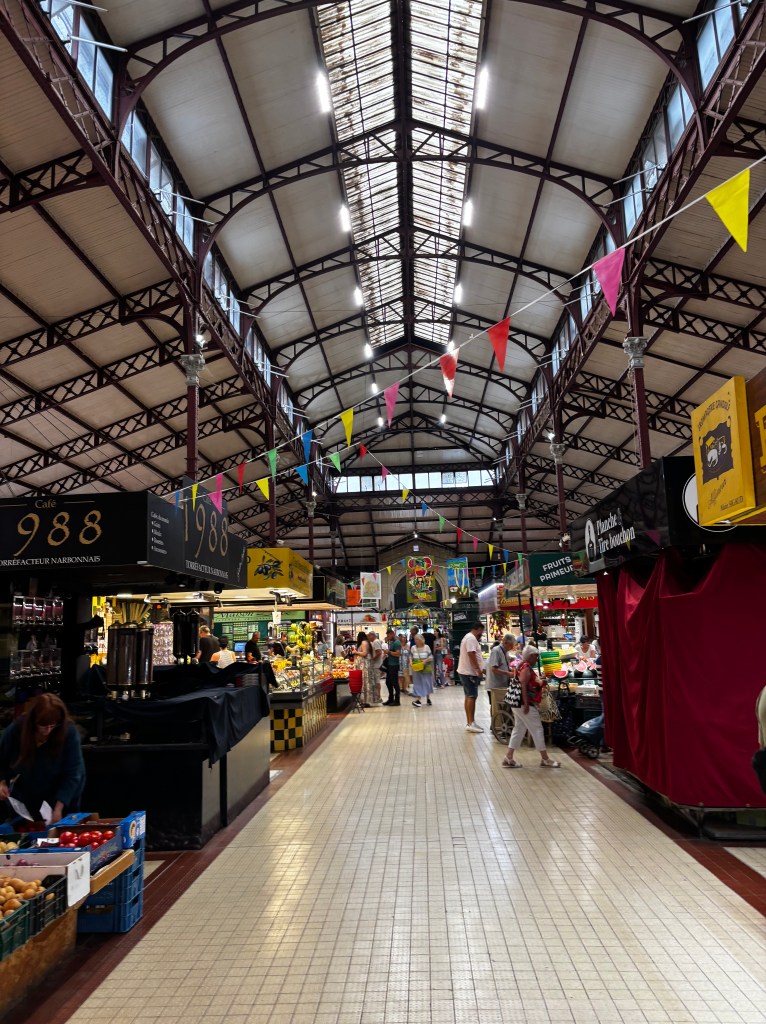 Staden Narbonne är jättecharmig, i marknadshallen Les Halles kunde jag ha ha fyllt bilen med alla matvaror om jag haft ett kyskåp, medan marknaden utanför hade massor av begagnade kläder, typ tömda från insamlingscontainrar och som mängder av främst kvinnor drog i inte kändes ett dugg frestande.