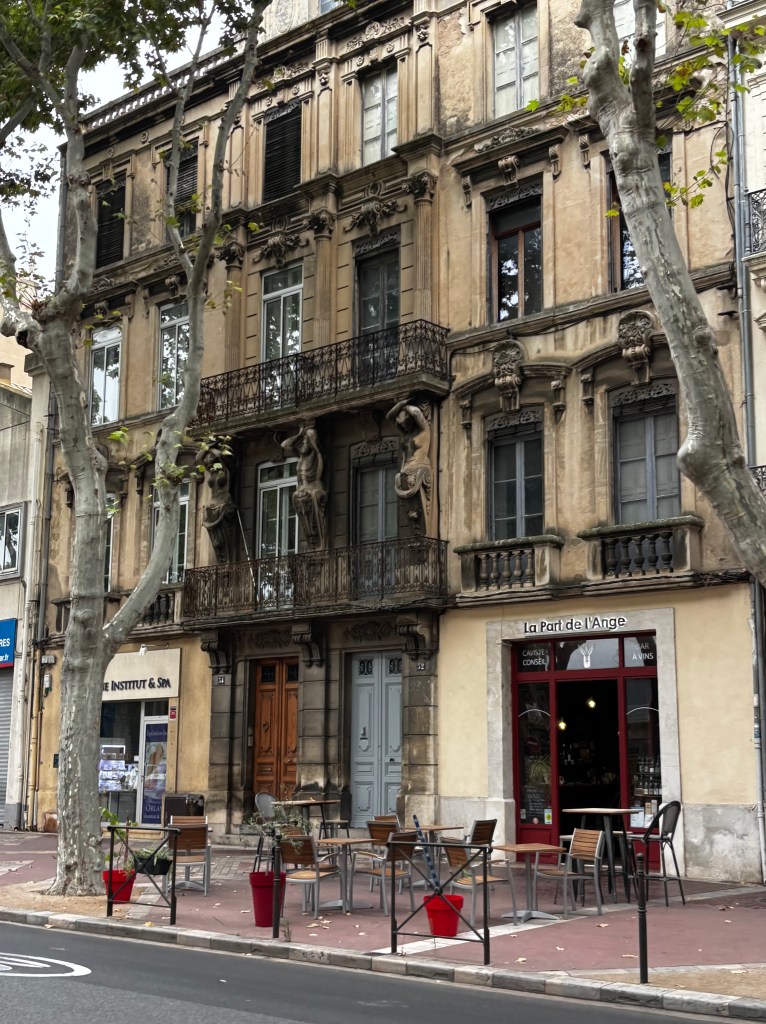 För att få Mannen på lite bättre humör körde vi in i Narbonne igen och åt en sen lunch bakom saluhallen, innan vi styrde kosan norrut, mot nästa mål Montélimar.