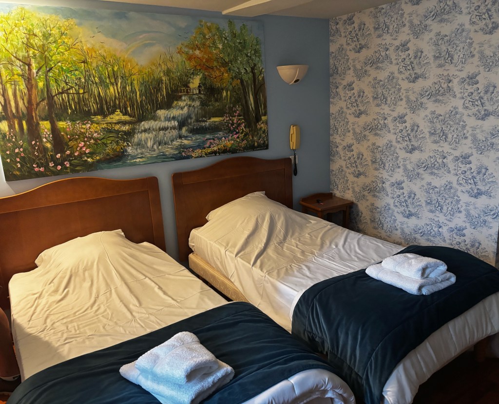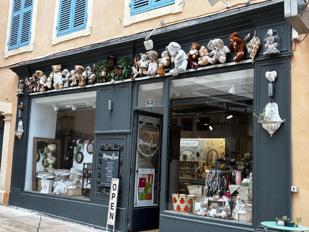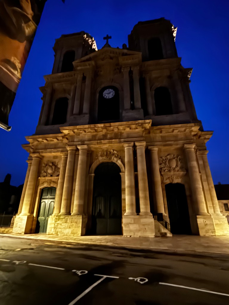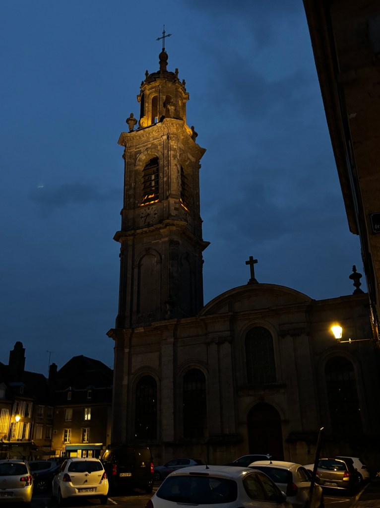 Nästa stopp, Langres, bestämdes för att när vi gjorde Europa med husbilen fö ett antal år sedan stod vi där på en rätt trist ställplats i utkanten av stan och upptäckte när vi körde därifrån att det fanns en ringmur runt vad som såg väldigt fint ut. Nu skulle vi bo innanför murarna, och bokade med parkering på gården. Byggnaden var gammal, men rummet vackert och sängarna sköna. Hela stan, som benämns som den femte vackraste i Frankrike, var full med gamla byggnader att vandra runt bland, plus många vackra portar och fönster.