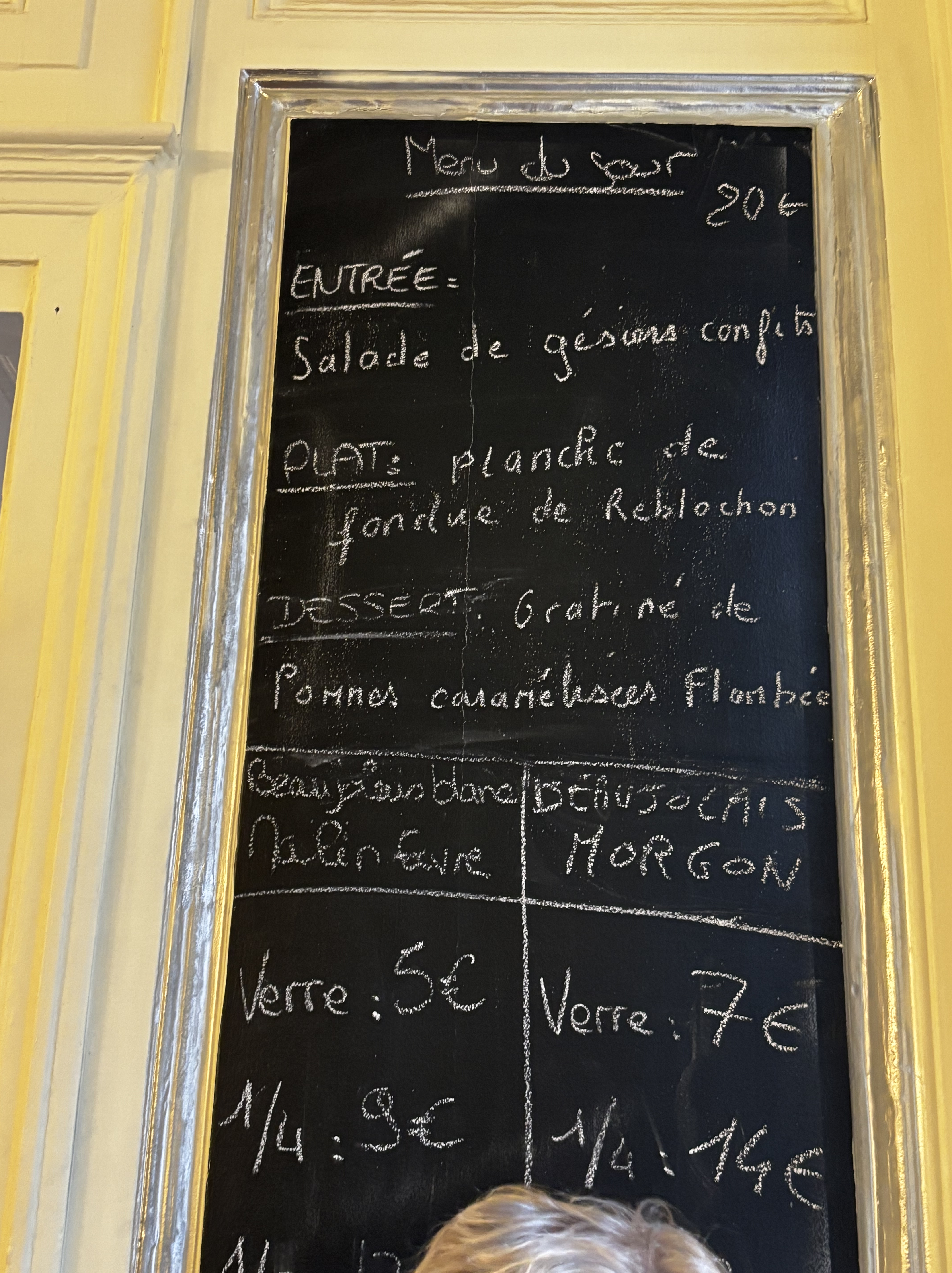 Hotellet hade en restaurang och jag missförstod det där med tiden, och trodde att man skulle vara på plats klockan 19.00 vilket vi var, men det var då de öppnade. Matsedeln fattade jag inte mer av heller, och det var bara desserten jag gissade rätt på.