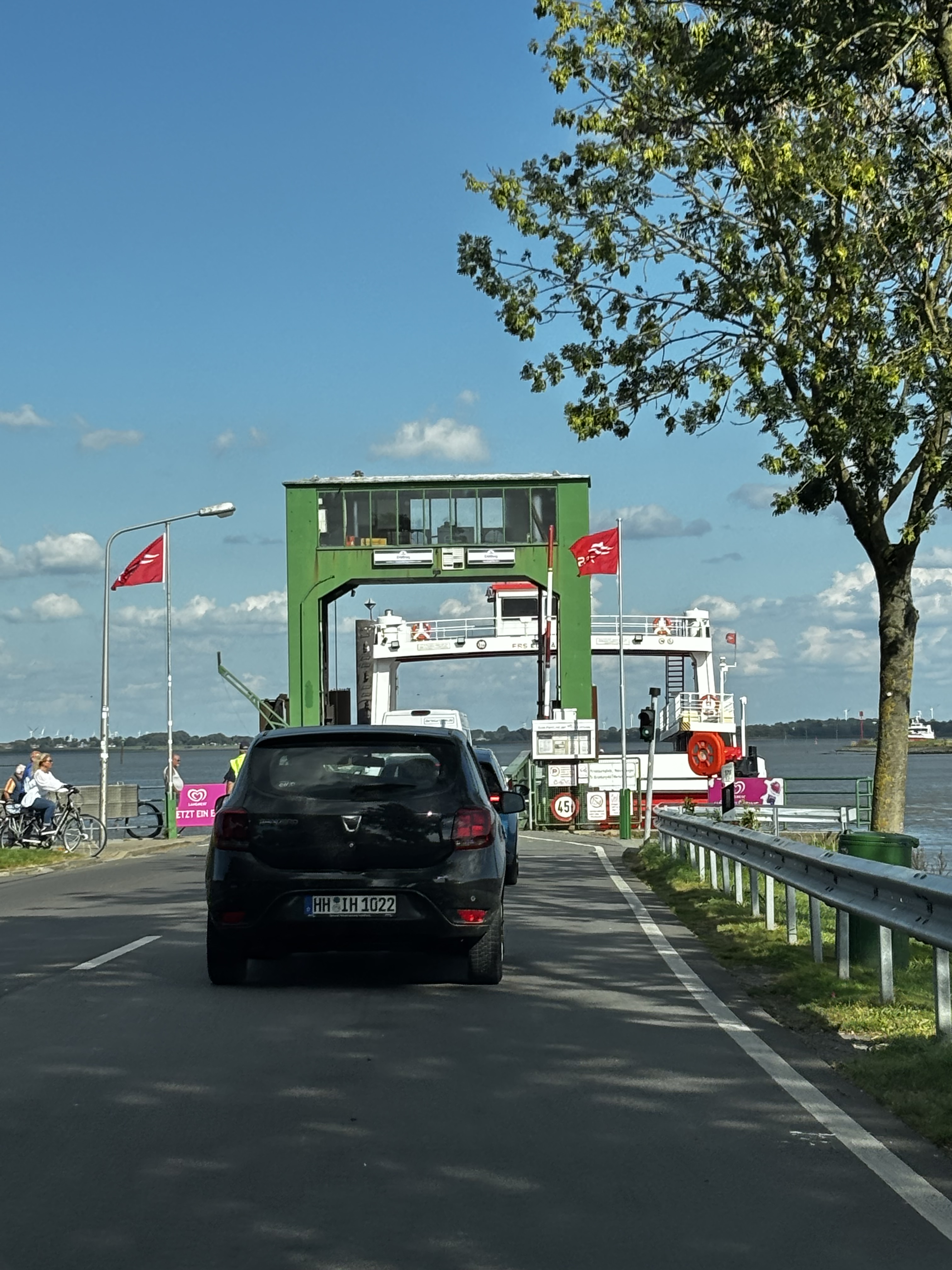 Hemresan skulle ta 10 timmar enlig Google maps, om vi tog bilfärjan över Elbe från Wischhafen som brukar gå mycket snabbare än att köra över Hamburg. HA! Det var fler som upptäckt den genvägen och vi fick sitta i bilkö över 90 min innan vi kunde köra ombord.