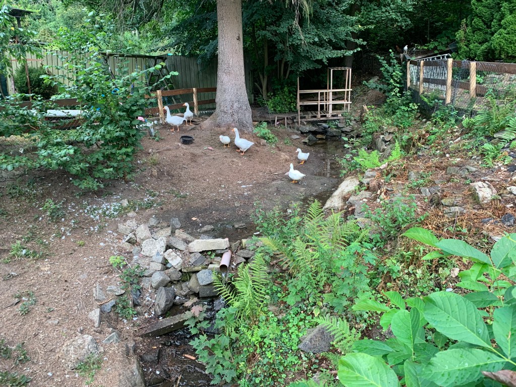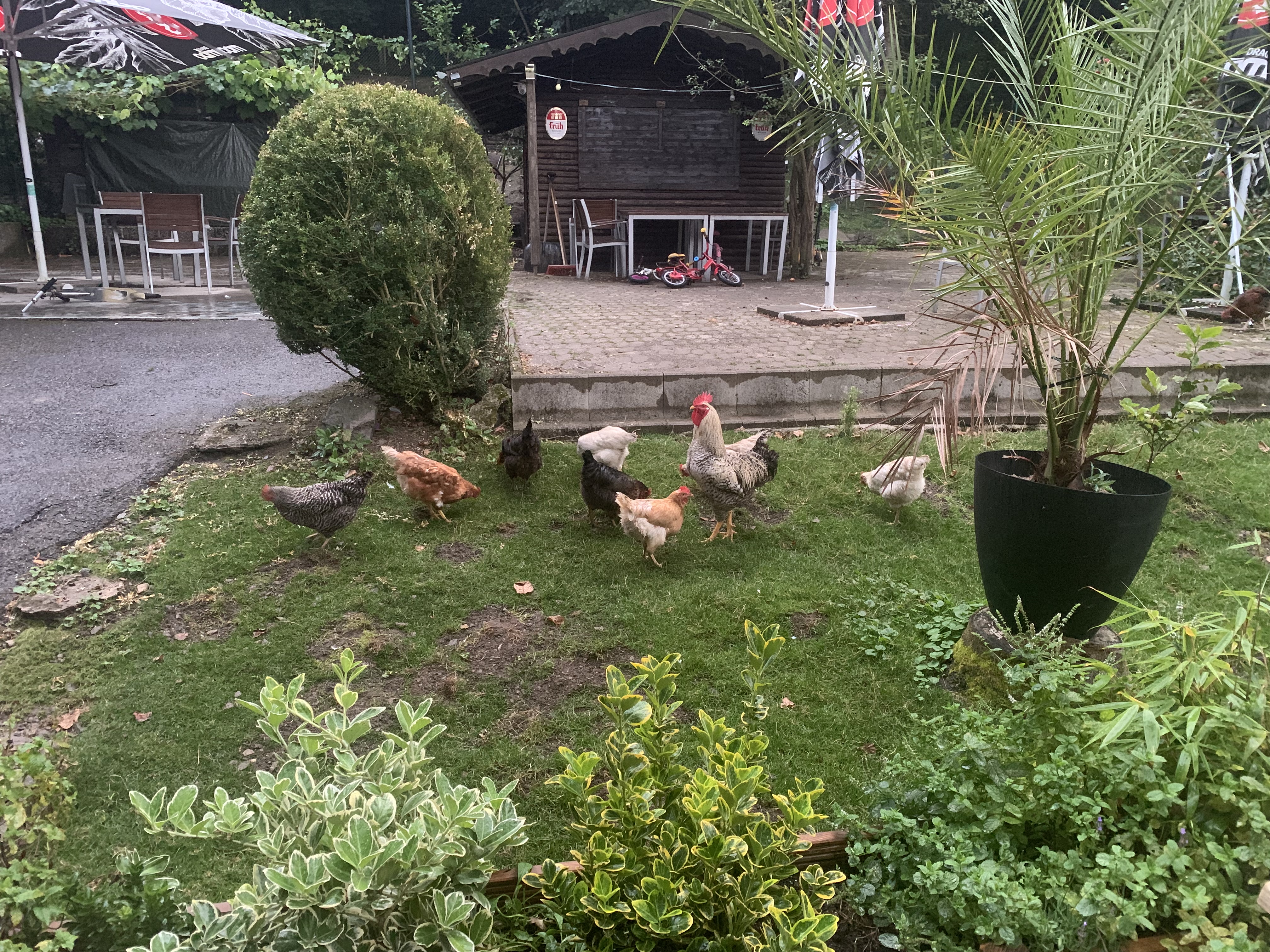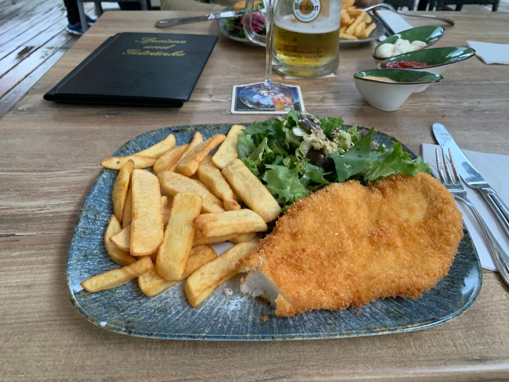 Hotellet vi bodde på där var iallafall lite oväntat. Ett par i yngre medelåldern med tre små flickor hade satsat allt i ett gammalt Gasthaus och gjort om det till en plats med all in vad beträffar inredning och lyxig asiatisk mat. I den vackra trädgården gick ankor och höns fria. Nu fanns det också schnitzel, vilket Mannen pratat om hela dagen så vi hoppade sushin. Tyvärr, sade min mage som tvingade oss att stanna på många rastställen dagen efter.