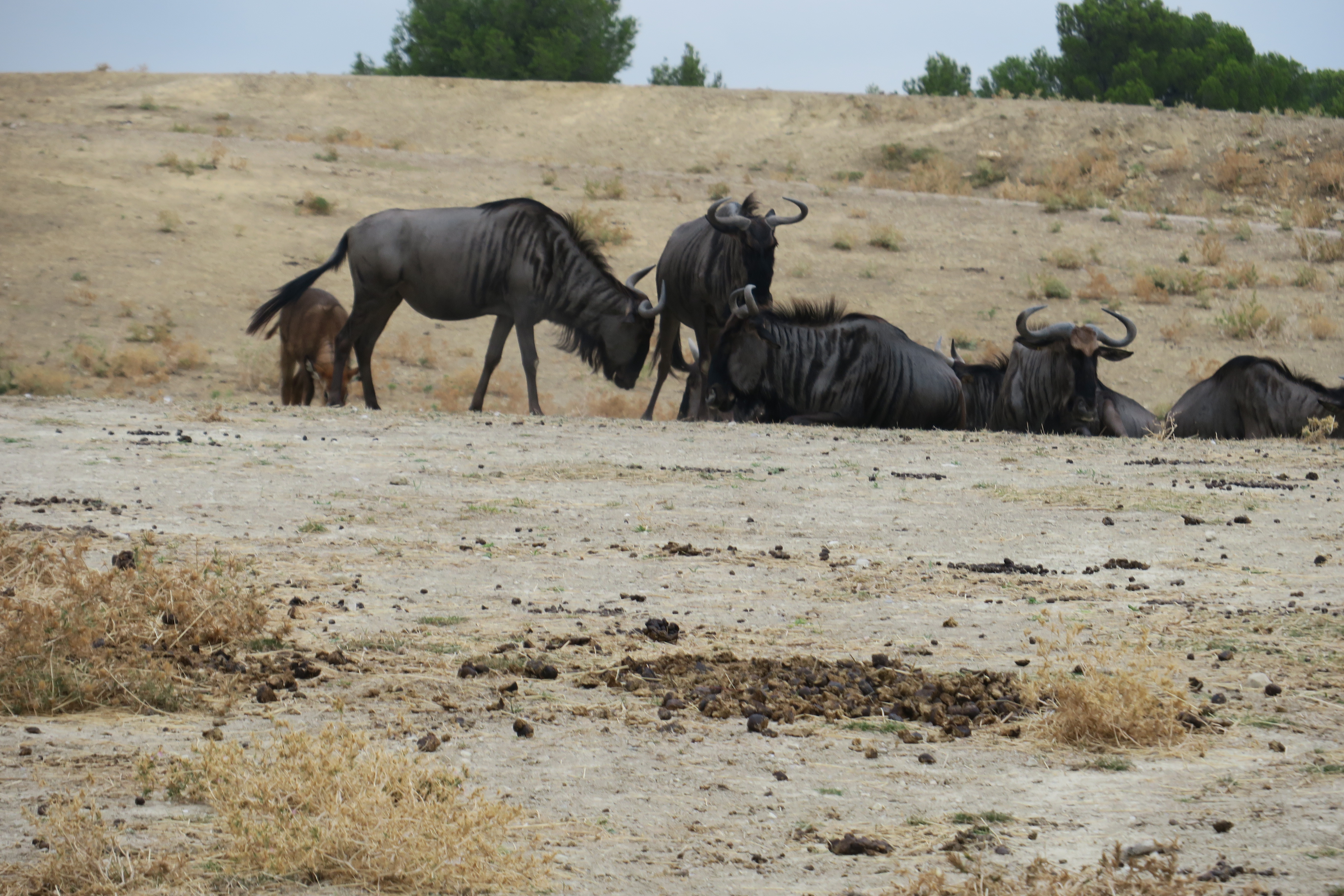 Det var bara ett gäng strutsar som var pigga på att vara med på bild. Zebror såg vi på håll, liksom två giraffer och ett gäng lejon son låg långt in under några träd och sov, liksom noshörningarna. Gnu och antiloper, visst, men inga tillfällen till säskilt bra foton.