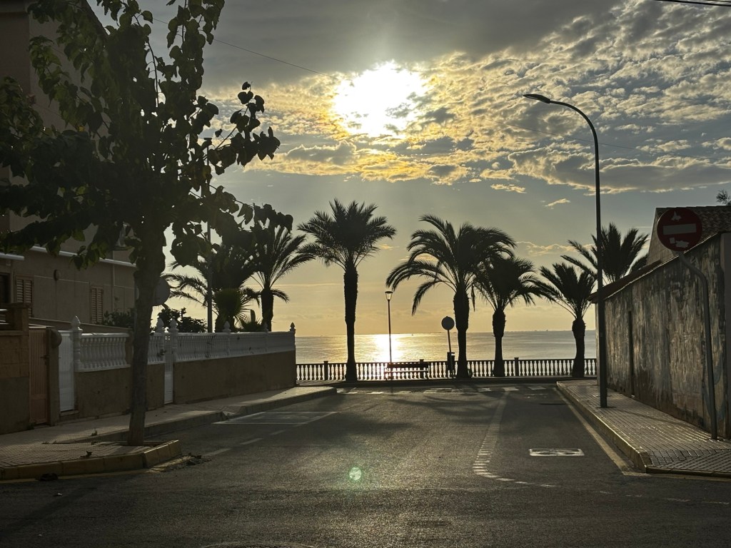 Men det är självklart en vardag här också, med tvätt, disk, städning, handling (till lägre priser och med ett mycket större utbud av färskvaror än hemma), matlagning, sopsortering och allt annat som hör vardagen till. En vardag som startar med en promenad, oftast till grannbyn El Mojon och utmed havet tillbaka, inklusive en cortado på strandcaféet, 5,5 km totalt.