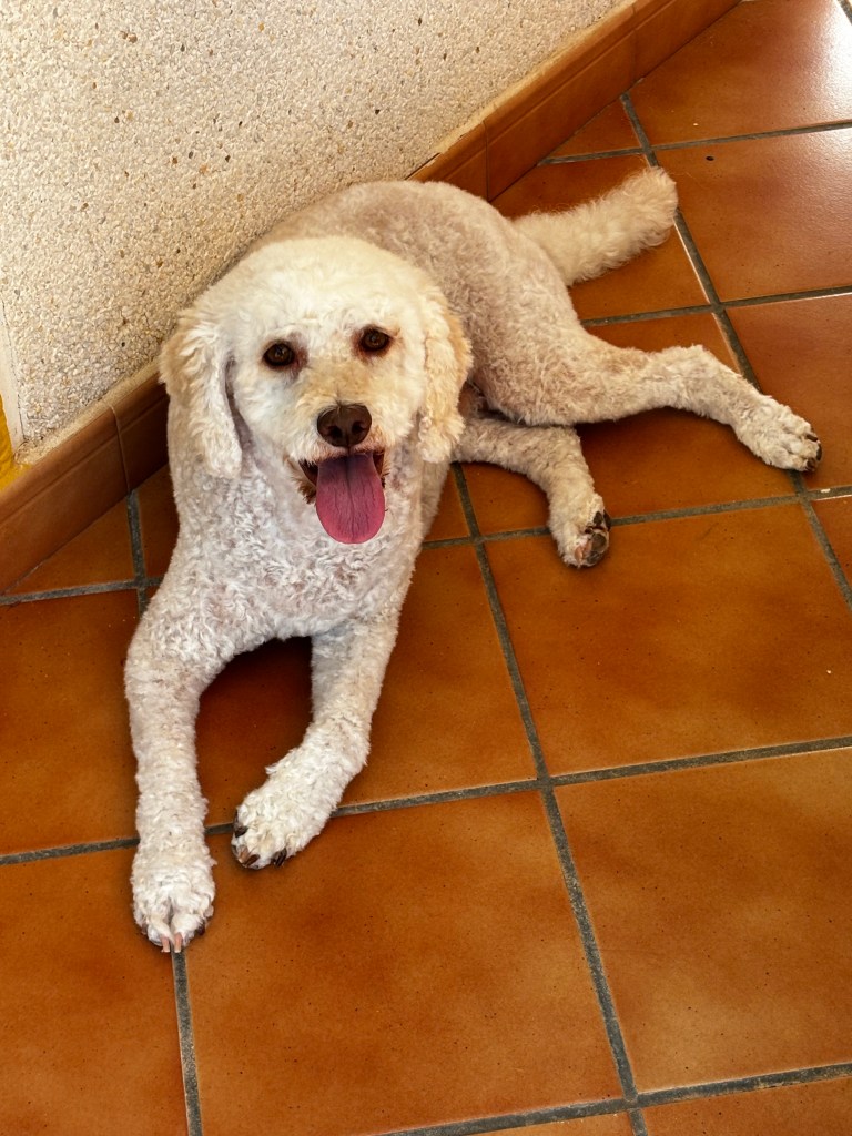Det stod tre saker på måste-listan denna första vecka här; besiktiga bilen (vilket gjorts utan anmärkning), klippa Siri som såg ut som ett ulligt får, och hon bara älskar att gå till frissan här. Hon pringer dit på bakbenen från bilen och nästan hoppar upp i famnen på förstafrissan. Tredje saken var att posta nycklarna till hotellet i Eschweiler som Mannen glömt lämna. Allt detta är nu gjort.