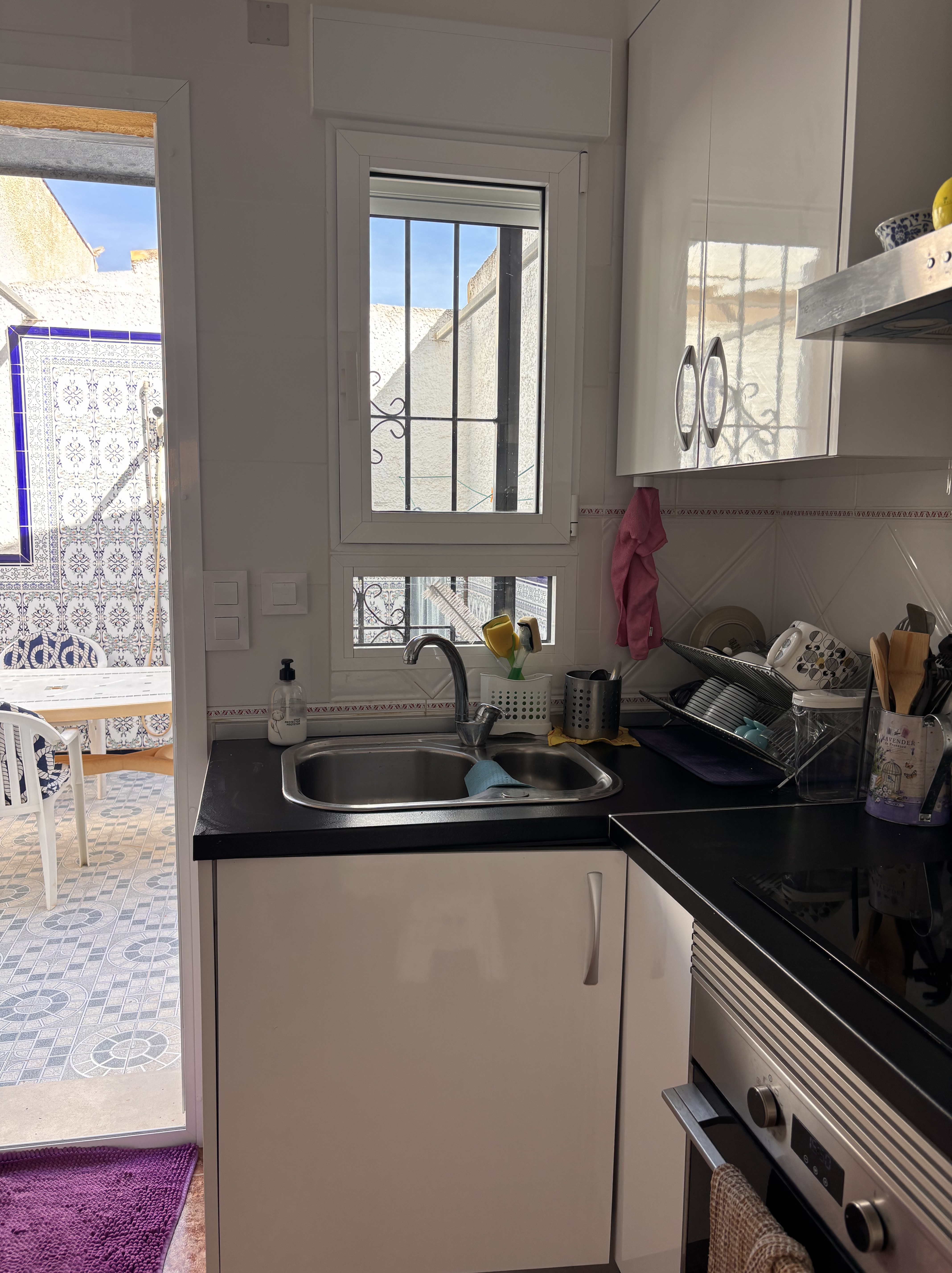 Först, det var svalt och inte dammigt i huset när vi kom. De nya fönsterna och dörrarna levererar verkligen. I går var det över 35 grader i skuggan, och vi behövde inte ha AC:n i gång för en behaglig innetemperatur.